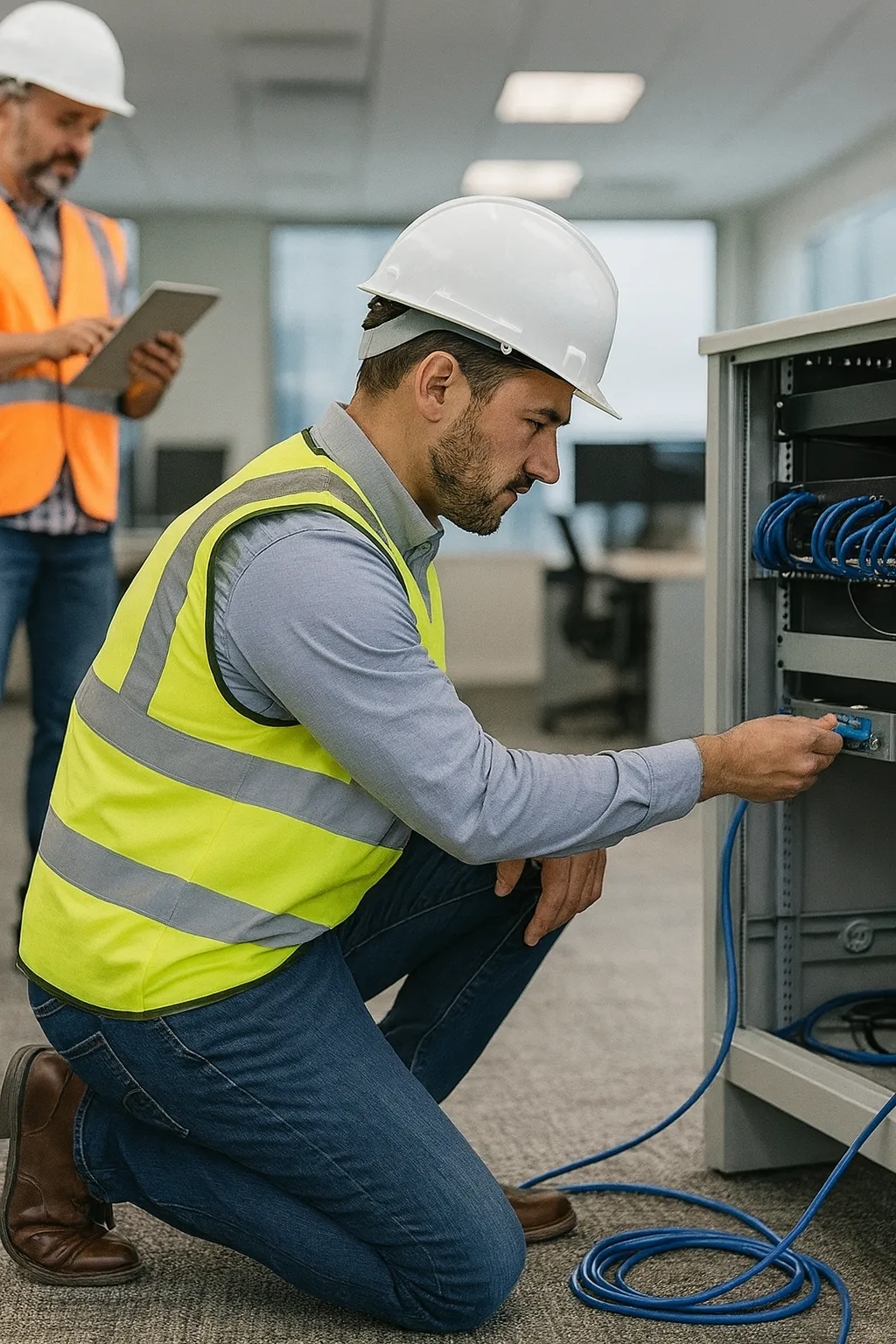 Our four-phase process keeps offices, trailers, and field teams secure, connected, and on schedule.